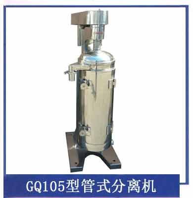管式離心機是通過離心力進行液固分離的,管式離心機具有很高的分離因數(shù)(1.5萬~3萬),GQ105型管式離心機轉鼓的轉速可達16300轉/分鐘。